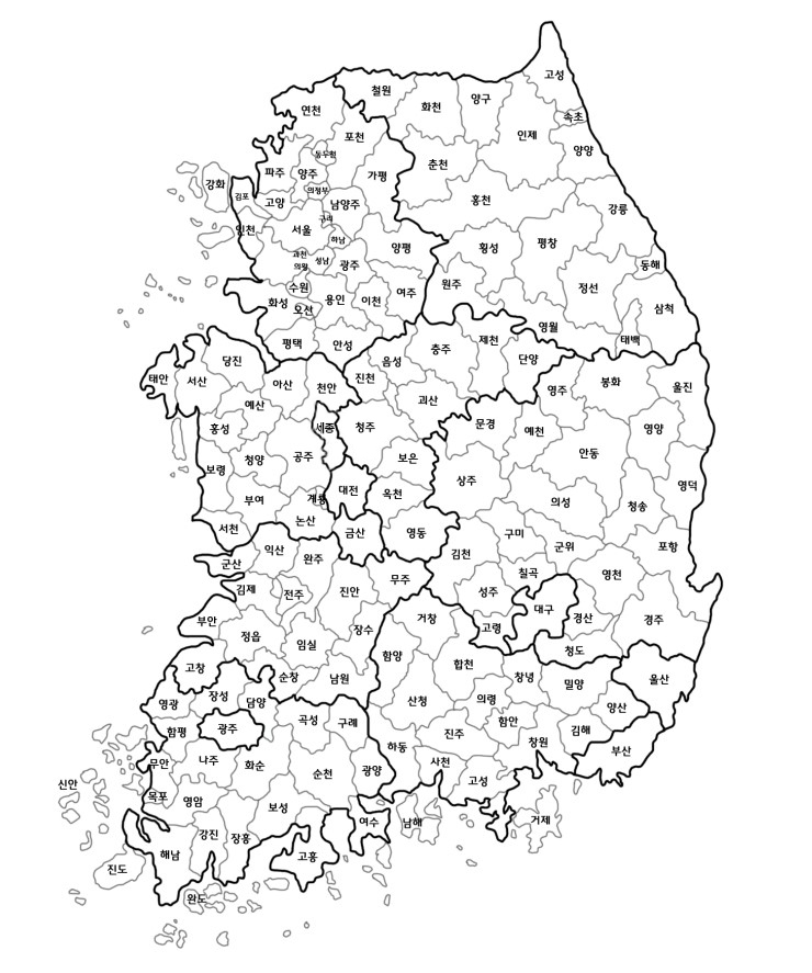 전국 - 서울, 경기, 강원, 충청, 전라, 경상